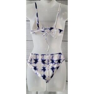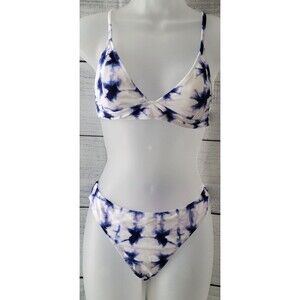 Cupshe Blue Crush Tie Dye Bikini Set Swimwear Cheeky Lace Up Back Sz L