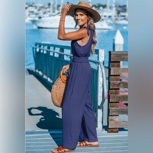 Cupshe Blue Sleeveless Tie Shoulder Wide Leg Jumpsuit Sz S