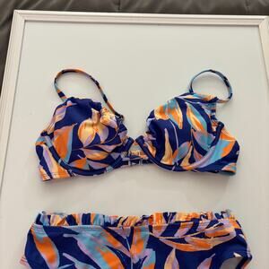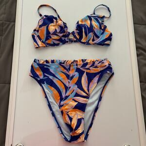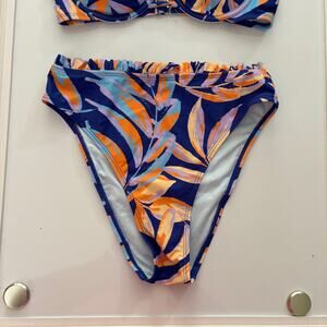 Cupshe Blue Tropical Push Up High Waisted Drawstring Bikini Swimsuit NWT Size S