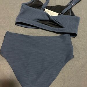 Stylish blue gray ribbed bikini set. Perfect for beach days.