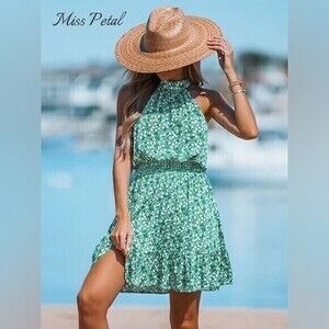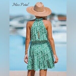 Cupshe Boho Green Ditsy Floral Swing Halter Short Dress Size M RefCPS025