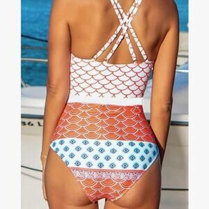 Cupshe Brand Women's XL Orange Geo-Print Scoop Neck One Piece Swimsuit