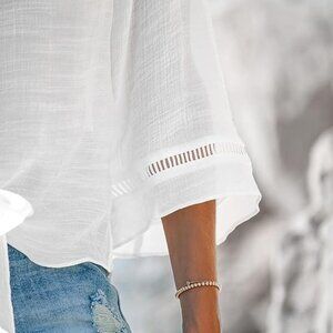 Cupshe Bright White Flared Sleeve Tied-Waist Cover-Up | Size M | NWT | Beachwear