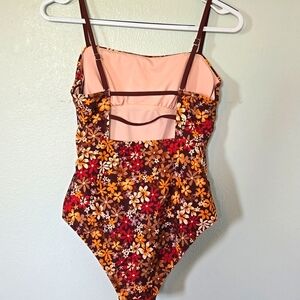 Cupshe Brown And Orange Floral One Piece Swimsuit Size Medium