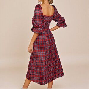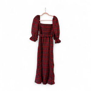 Cupshe Burgundy Belted Tartan Plaid Maxi Dress Size Large