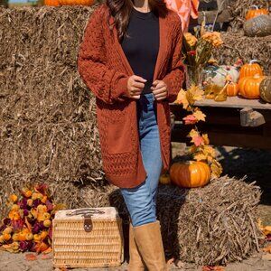 Cupshe Burnt Orange Longline Cardigan Size L | Open Front w/ Pockets | NWT