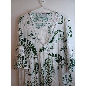 Cupshe Cover Up Tropical Dress Womens O/S Green White Floral V Neck Boho Sleeves
