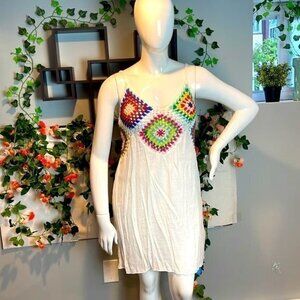 Cupshe Crochet Hollow V-Neck Strappy Beach Dress Swimsuit Cover Up Size Large