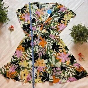 Cupshe Cute Floral Ruffle Tie Front Dress or Cover-up NWT Size L