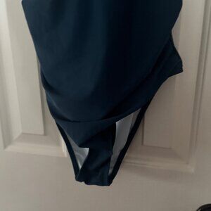 Cupshe Dark Teal Blue Yellow White Floral One Piece Swimsuit Size M Medium New