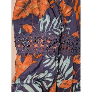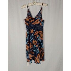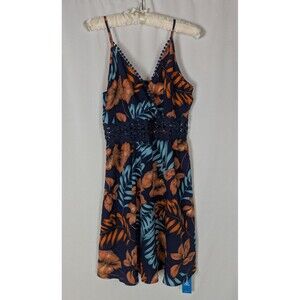 Cupshe Dress M Women's Blue Tropical Vneck Sleeveless Crochet A Line Mini Woven