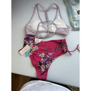 Cupshe Floral High Waist Bikini Set Ruched Tie Side Two Piece Swimsuit M