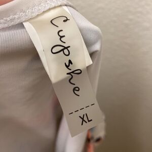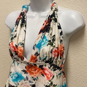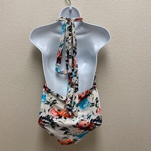 White floral one piece swimsuit from Cupshe. Deep plunge v neckline with tie neck detail. Size XL
