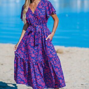 DETAILS V-neckline / Short flared sleeves / Waist tie / Slight Ruffled hem / Maxi Length / Style No. CAA05A4A2088UE