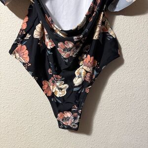 Cupshe Floral Swimsuit One Piece Cold Shoulder Ruffles