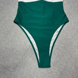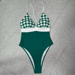 Cupshe Lace Up One Piece Swimsuit in Pine Green & White Gingham Print. Removable padding. Adjustable straps in back. Size medium. New with tags.