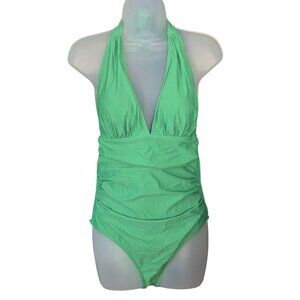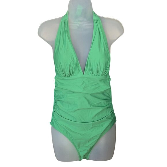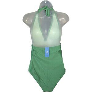 Cupshe Green Halter Neck Ruched One-Piece Slimming Swimsuit Medium Fully Lined