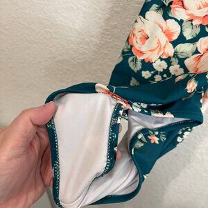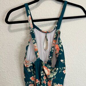 Cupshe Green Pink Floral Criss Cross Back One Piece Swimsuit Womens Size M