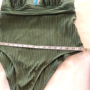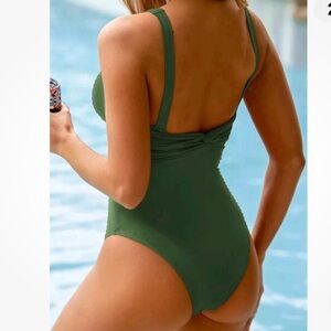 Cupshe Green Ribbed Plunge Neckl Rushed Twist Back Detail One Piece Swimsuit XL