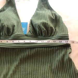 Chic olive green ribbed swimsuit. Ideal for summer fun.