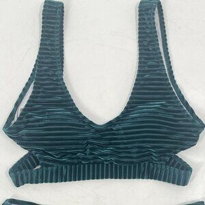 Cupshe Green Velvet Striped Bikini Swimsuit Sz Small NWT Jewel Tone Festival