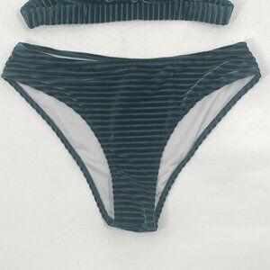 Cupshe Green Velvet Striped Bikini Swimsuit Sz Small NWT New with tags