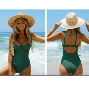 Cupshe Green Wave Underwire One Piece Swimsuit Green Women's Medium