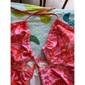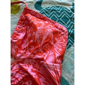 Cupshe Halter Neck Coral Pink Floral One-Piece Swimsuit Ruched Front Size Large