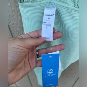 Cupshe Halter One Piece Ribbed Bathing Suit Mint Green Size Large NWT