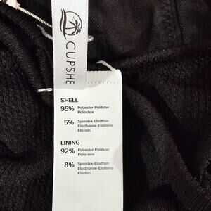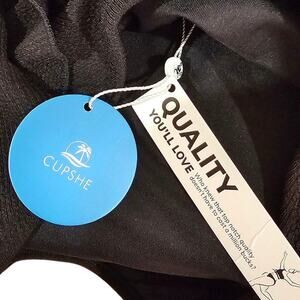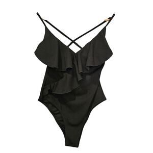 Cupshe Happy Ending Ruffle Ribbed One Piece Swimsuit in Black. Features surplice plunge V-neck with ruffle details, padded cups, ribbed fabric, and open back with adjustable crisscross straps. Style CYY31394B. Shell: 95% Polyester, 5% Spandex. Lining: 92% Polyester, 8% Spandex. NWT / New with tags.