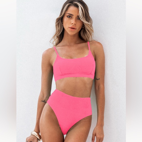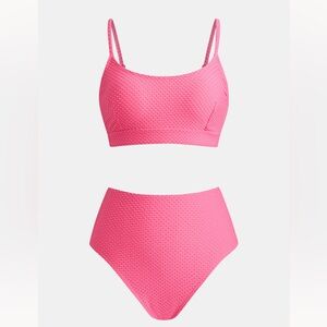 Brand new, never worn pink textured bikini from Cupshe. Size large. Bottoms are high rise with classic bottom coverage. Top has removable pads and adjustable straps