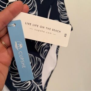 NWT Size XS Missing protective film Navy Blue Monstera Leaves