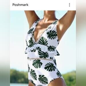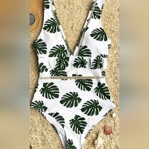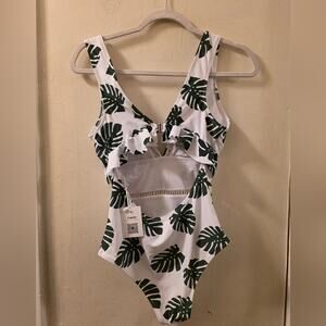Cupshe In The Forest Tropical Green White One Piece Bathing Suit Size S NWT