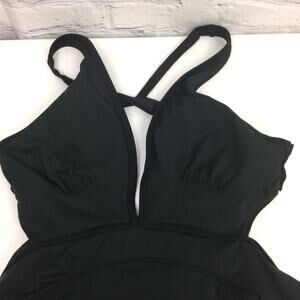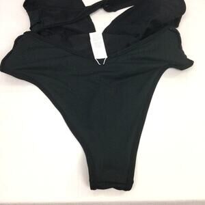 Cupshe + Jojo Fletcher Women's Black Deep V Neck High Cut One Piece Bathing Suit Size Large