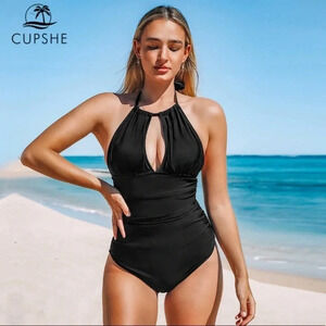 Cupshe Keep Secrets Black Halter One Piece Small