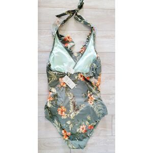 Cupshe M One Piece Swimsuit Size M Green Color W/ Tropical Floral Print NWT