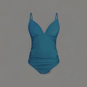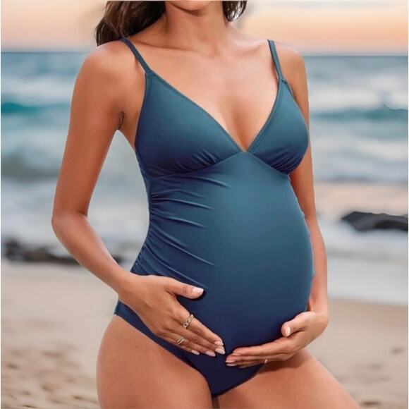 Feel confident and comfortable with this Cupshe maternity one-piece swimsuit in medium size and dark blue color. Designed with a flattering V-neckline and ruched tummy detailing, this swimsuit offers both style and support throughout pregnancy. Adjustable shoulder straps ensure a customized fit, while the soft, stretchy fabric provides comfort for growing bellies. Perfect for beach days, poolside lounging, or babymoon getaways.