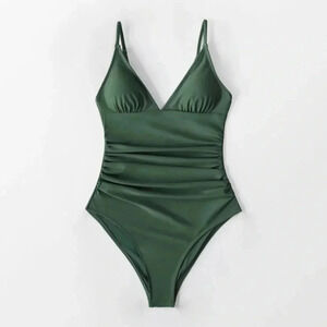 Cupshe Medium Army Green One-Piece Adjustable Strap Ruched Bathing Suit
