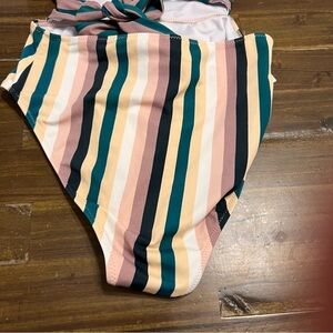 Cupshe Miss U Green One Piece Tropical Leaves Stripes Zipper Back Tie Small