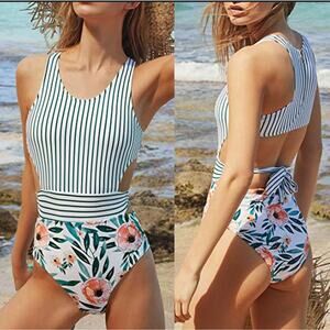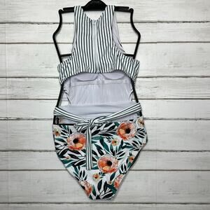 Cupshe Miss You Poppy One Piece Swimsuit Floral Stripe Size Large