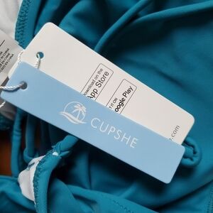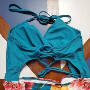 Cupshe Monokini One Piece Womens Medium Teal Floral Cutout Tie neck High Waist