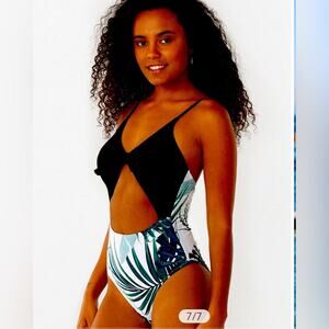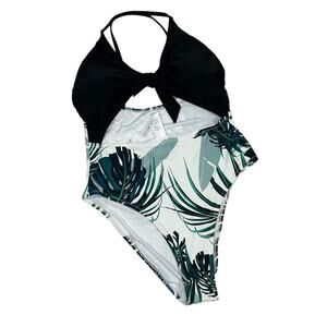 Cupshe NWT Black Floral Print Halter Tummy Control One Piece Swimsuit Monokini
