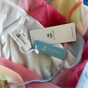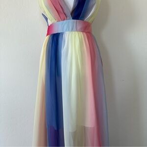 Cupshe NWT Colorful Rainbow Plunging Neckline Cross Back Maxi Dress Large