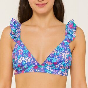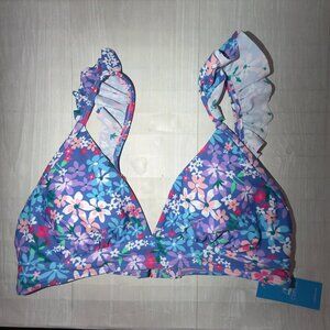 Cupshe NWT Floral Ruffle Bikini Top Size Medium Vibrant Print Swimwear