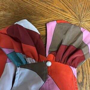 Vibrant dress with a geometric pattern. Features red, pink, teal, and brown colors. Perfect for a bold look. Super cute casual or dress her up!!