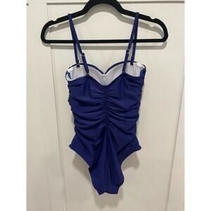 NWT blue one piece bathing suit. Adjustable shoulder straps.