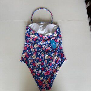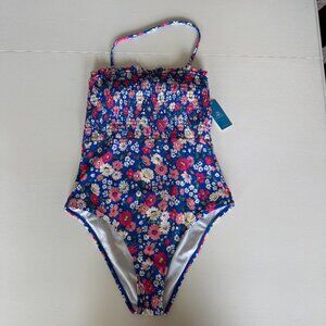 Cupshe NWT Women's One Piece Swimsuit Large Floral Halter Ruffled Smocked