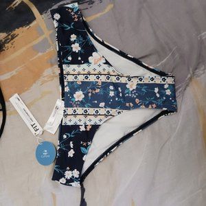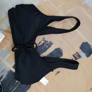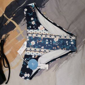 New with Tags and sanitary liner in place. Dark Navy top has sexy crossing laceup detail in front and back, which ties in back. Classic bikini bottom in boho style paisly stripe print. I was in the process of losing weight, so I bought this set in two different sizes (small and medium), and held on to both until I could decide.
