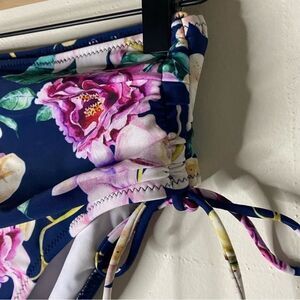 Navy floral bikini bottom from Cupshe. Cinch sides with ties. High waisted. Size XS. New with tags.