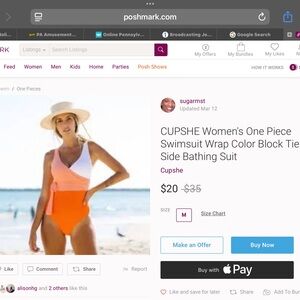 Cupshe Fun yet Elegant one piece swimsuit with a wrap design. Features bold orange, soft pink, and crisp white color block design and side bow tie. Excellent condition!